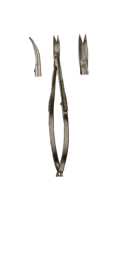 Микрохирургические ножницы конструктивно состоят из лезвия, шарнирного замка, рукоятки и возвратно-пружинящего устройства Ножницы, используемые в микрохирургии, имеют следующие отличия от обычных ножниц: - Ориентацию плоскости лезвий перпендикулярно плоскости рукояток. - Небольшую длину лезвий по сравнению с длиной рукояток. - Ребристую наружную поверхность рукояток для удобства фиксации в руке. - Удлиненную прорезь на рукоятках для кончиков пальцев. - Пластинчатое пружинное устройство для возвращения лезвий в разомкнутое положение, при прекращении надавливания пальцами на рукоятки. Соприкосновение и разведение режущих кромок обеспечивается движением рукояток, поэтому амплитуды движений рукояток и лезвий совпадают. В то же время соотношение длин лезвий и рукояток обеспечивают развитие усилий по принципу рычага: - чем больше длина рукояток превышает длину лезвий, тем меньше усилий необходимо прикладывать для рассечения тканей - чем длиннее лезвие, тем больше усилий необходимо прикладывать для рассечения тканей. Хирургические ножницы имеют два лезвия, которые при встречном движении рассекают ткани. Угол заточки лезвий ножниц, как правило, находится в пределах 40°. Заточку производят только с наружной стороны лезвий. На ручках инструментов вытравлены серийные артикулы для идентификации. Все инструменты имеют привлекательную, современную (Satin finishing), практичную, матированную и антибликовую обработку поверхностей, что делает использование инструментов более долговечным и позволяет придерживаться высоких стандартов стерилизации.