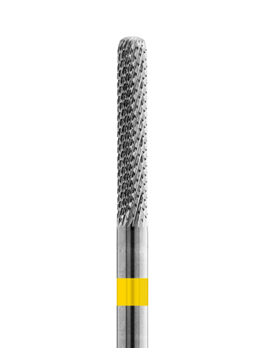 Головка фрезы ТВС № 3 (11230) изготовлена из специального твердого сплава, что обеспечивает нужную степень абразивности и гарантирует долговечность инструмента. Хвостовик с желтой насечкой благодаря правильной центровке позволяет избежать биения при работе.