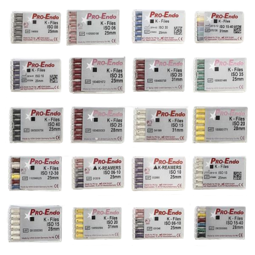К-Файлы Pro-Endo № 15-40 от VDW (Германия) применяются в эндодонтии для тщательной очистки и расширения корневых каналов. Они используются при работе с осложненным кариесом и подготовке каналов к последующим процедурам пломбирования.